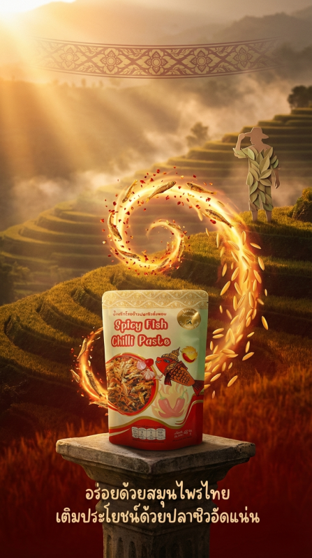 ผลิตภัณฑ์ที่ได้จะถูกบรรจุในภาชนะที่ได้มาตรฐาน พร้อมการควบคุมคุณภาพที่เข้มงวดทุกขั้นตอน ทั้งหมดนี้ทำให้ได้น้ำพริกโรยข้าวที่ไม่เพียงแค่อร่อยเท่านั้น แต่ยังสะอาด ปลอดภัย และคงความสดไว้ได้ยาวนานโดยไม่ต้องแช่เย็น เหมาะสำหรับทุกวัยและสามารถพกพาสะดวก เหมาะสำหรับเป็นของฝาก ของขวัญในเทศกาลต่าง ๆ